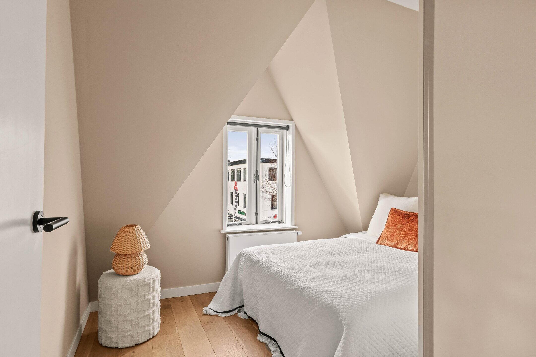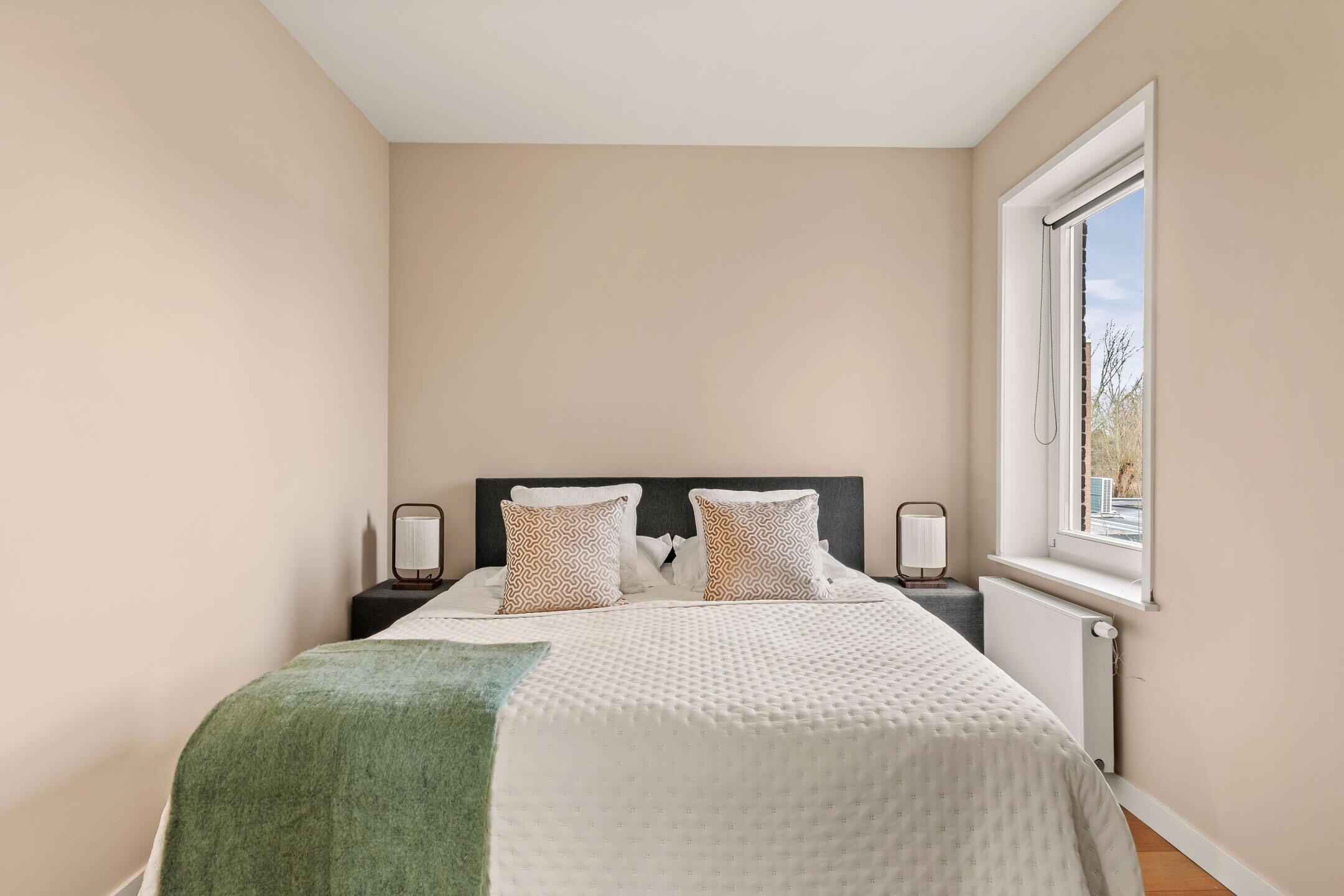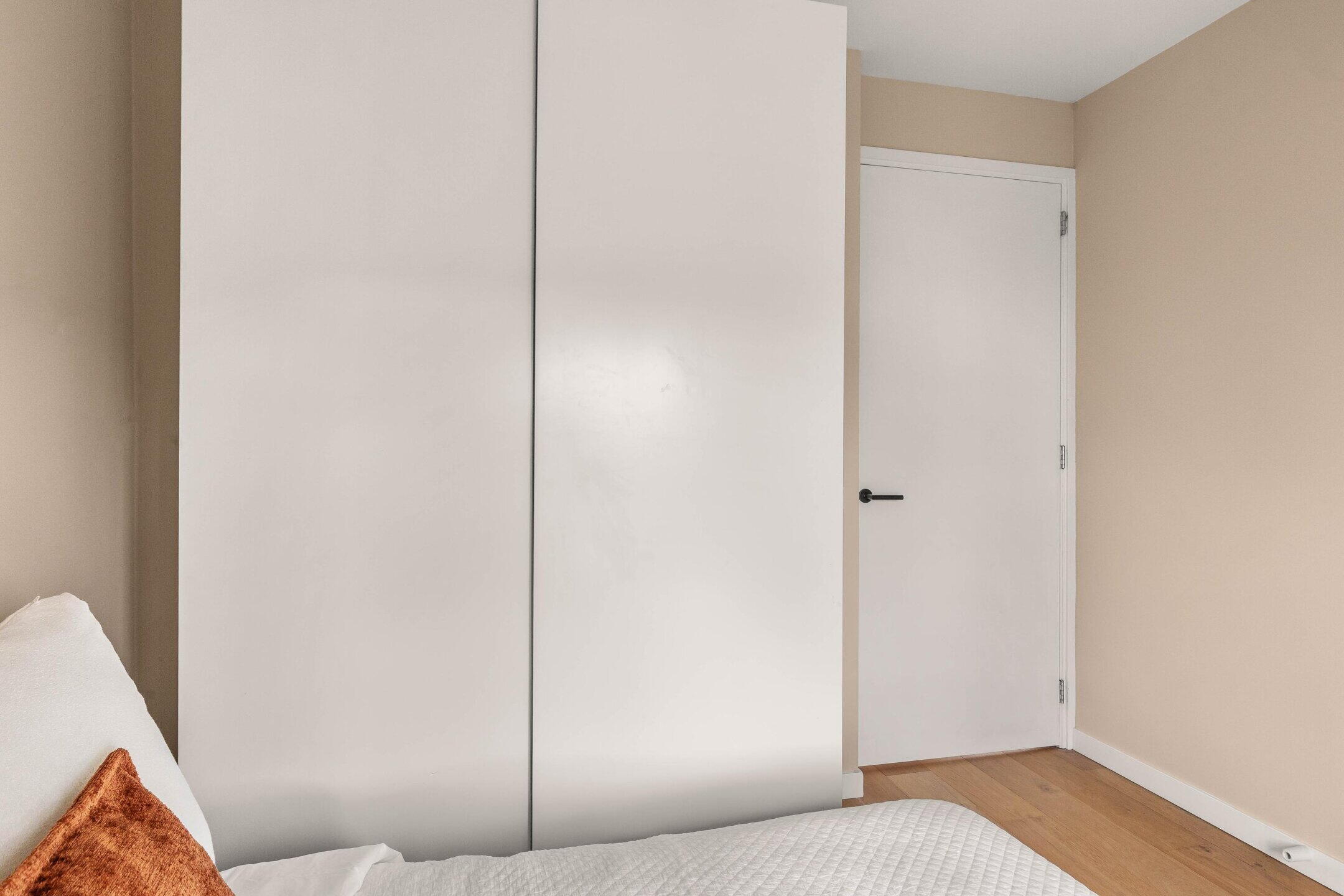 De woning beschikt over twee slaapkamers. De hoofdslaapkamer biedt voldoende ruimte voor een tweepersoonsbed en is rustig gelegen. De tweede slaapkamer is ideaal als logeerkamer, kinderkamer of thuiswerkplek.